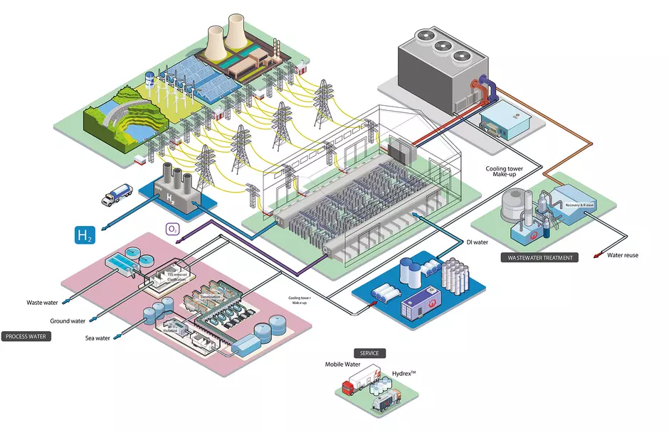 - Medium-scale hydrogen production (20-100 MW): Two standard treatment packages