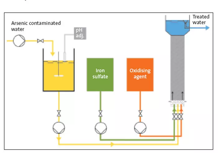 - Potable water contaminated by arsenic or nickel as a result of pyrite oxidation.This problem can be solved by installing a MetClean™ treatment unit at the existing water supply facility.