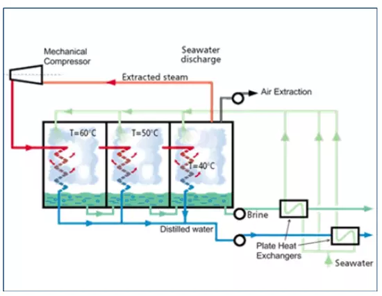 - When no steam is available, it is still possible to use the MED process by adding a Mechanical Vapour compressor (MED-MVC).