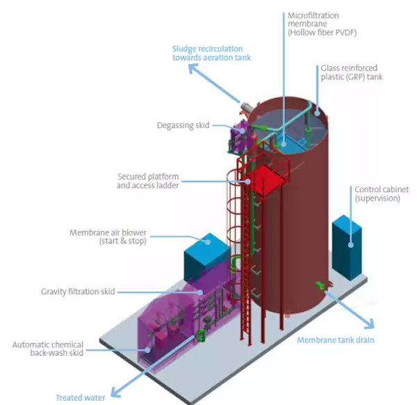 - The skid-mounted system can easily be integrated into existing or new works. It includes both filtration and membrane cleaning systems.