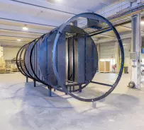 TiPPS is a proven technology originally designed for removal of suspended solids from stormwater in refineries. This new application of proven technology is helping to improve the performance of acid settlers in alkylation units around the globe. One example is the upgrade of the Saudi Arabia Yanbu acid settler Phillips66 recontacter drum as shown in the photograph. In this case, the horizontal vessel had an internal diameter of 3,000 mm. The plate pack used to remove the HF acid is 6 meters long, constructed of low alloy carbon steel.Weight of the internals shown is 7 tons. Design requirements included temperature of 50°C, pressure of 25 barg and performance of ds >25μm.